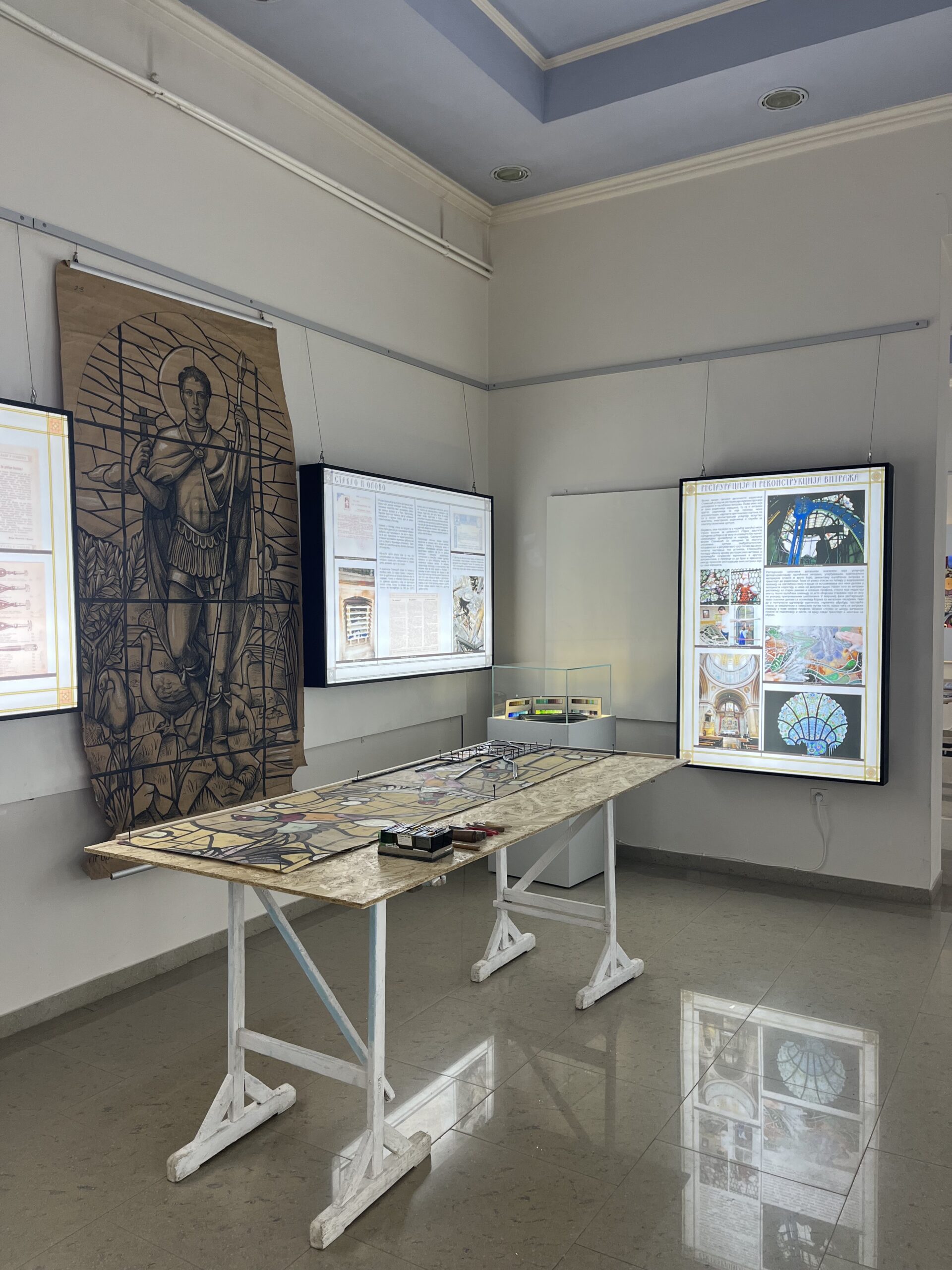 Vitraž je tehnika koja se radi ručno. Proces izrade je dug, od skice, sečenja raznobojnog stakla, sastavljanja, pa do postavljanja na određeno mesto. Vitraži se pojavljuju u srednjem veku za gradnju katedrala, a postepeno su postali umetnost. Atelje “Stanišić” neguje ovu umetnost od 1908. godine. Na izložbi “Atelje Stanišić – od zanata do umetnosti i natrag” prikazani su pribor i alati za izradu vitraža, kao i gotovi radovi. Posetilac ima priliku da vidi skup svih podataka uobličenih u izložbu.