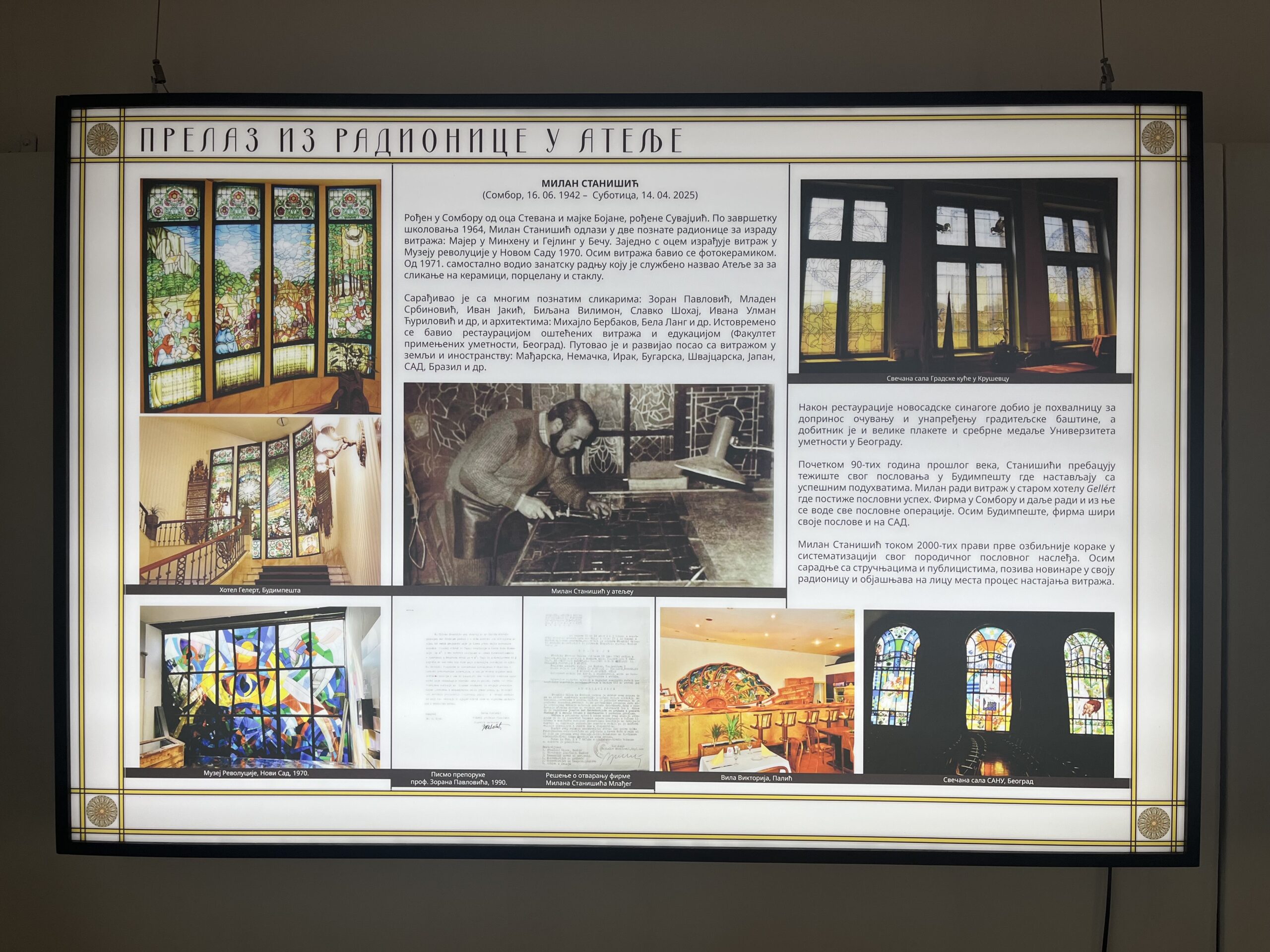 Otvorena je izložba “Atelje Stanišić – od zanata do umetnosti i natrag”. Prikazan je put porodične radionice “Stanišić”, od kraja 19. veka do danas, odnosno život i rad četiri generacije te porodice.